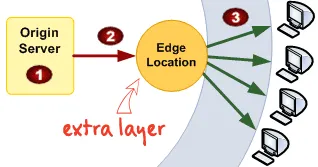 When you upload files to Amazon S3 and configure them with CloudFront, a copy of S3 files will be cached in various Amazon servers that are spread across important cities in US, Europe and Asia. So a visitor from India will be served content by the server located in Asia and so on – see illustration above for location of all Amazon servers.